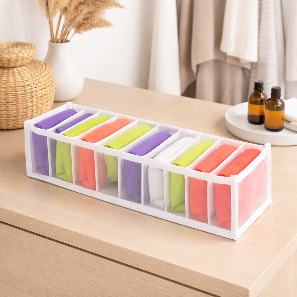 A Colmeia Organizadora PP foi desenvolvida especialmente para gavetas baixinhas e para a organização de peças pequenas. Com 8 nichos individuais, ela mantém tudo separado, visível e sempre à mão, deixando as gavetas mais bonitas, funcionais e organizadas.
